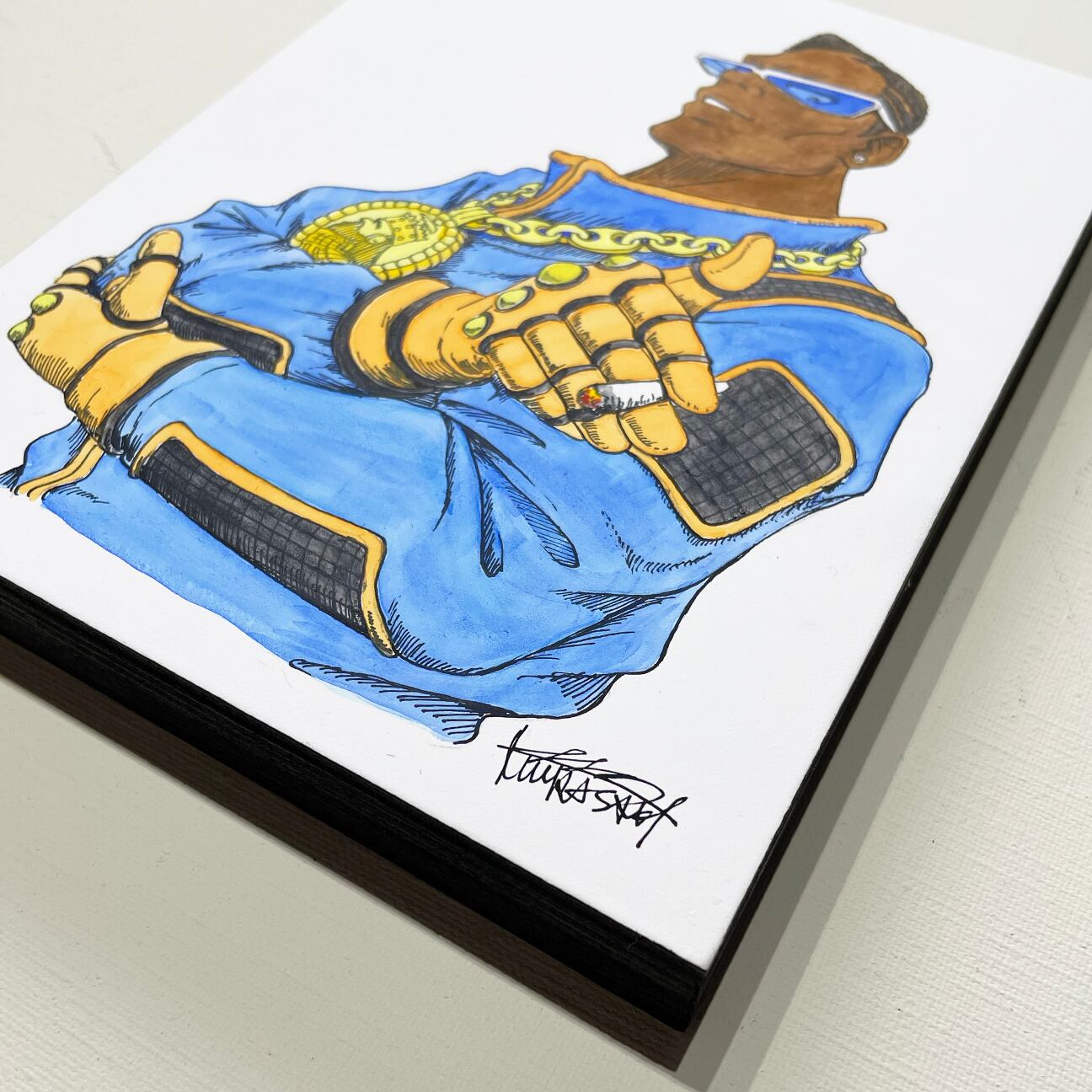 新時代のレゲエキャラクターを自由にイメージして描きました。原画と同じ絵柄のアクリルキーホルダー(1つだけ作った非売品)が付いています。原画は外に持ち出すのが難しいので、このアクキーを身につけて「これの原画を持っている」と自慢してください(^^)