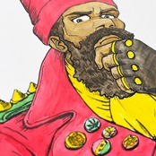 超絶硬派なラスタ DeeJayのCAPLETONがモデル、というかモロ本人寄せ。FIRE MANの異名通り赤い衣装を着ることも多いので、そこにパンク的な鋲やバッヂを着けてみました。腕のワッペンはラスタにとっての神セラシアイ皇帝、バッヂもラスタ系にまつわるアレコレになっています。