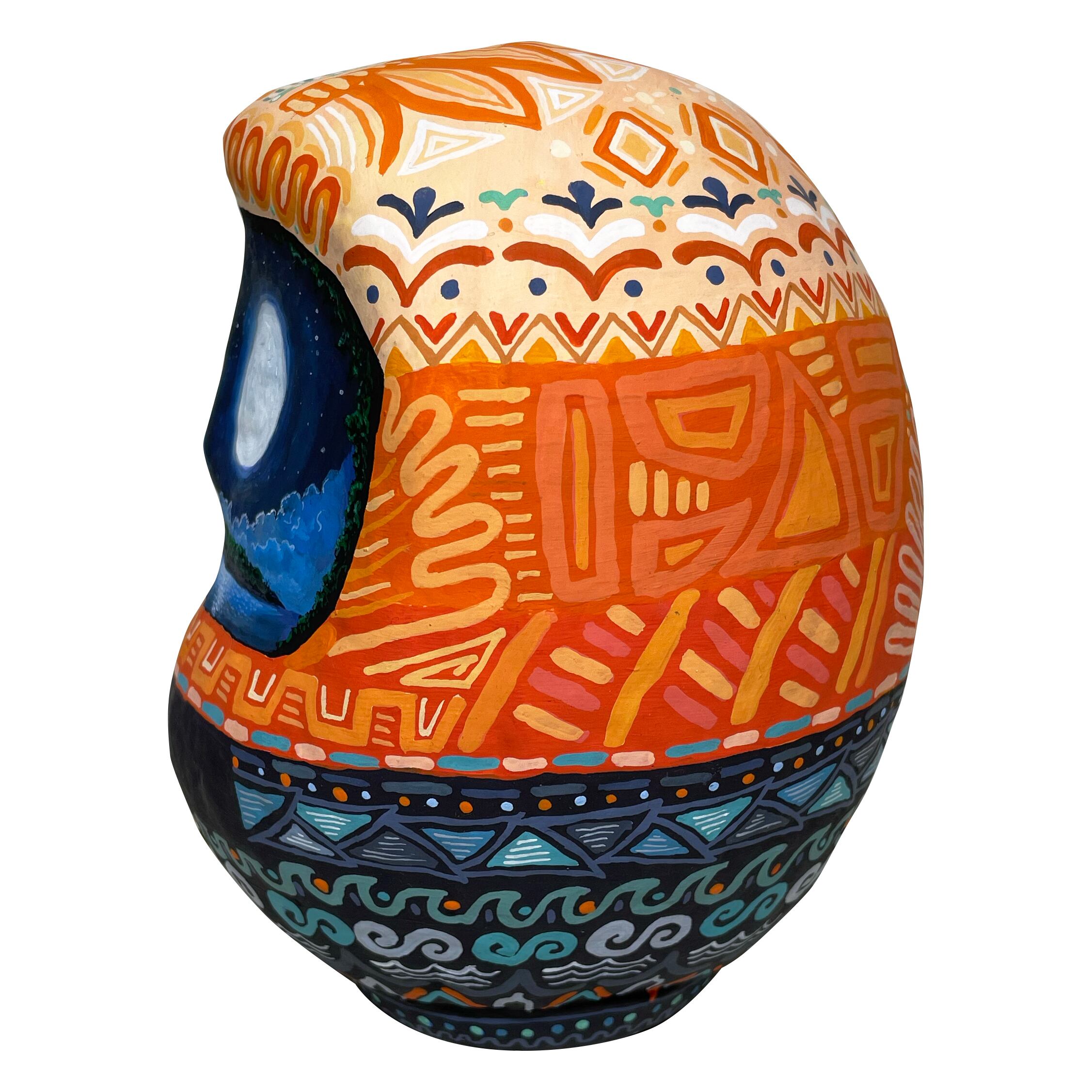スタジオムラサキのアシスタントをする傍ら、アート活動を行う娘NOAHと立ち上げたユニット【ZAKI884】による手描きダルマ。海と太陽をモチーフにした柄をNOAHが全体に描き、顔部分をMURASAKIが描きました。前部分に全体の雰囲気に合わせたデザイン文字でお名前をお入れします(10文字以内)