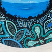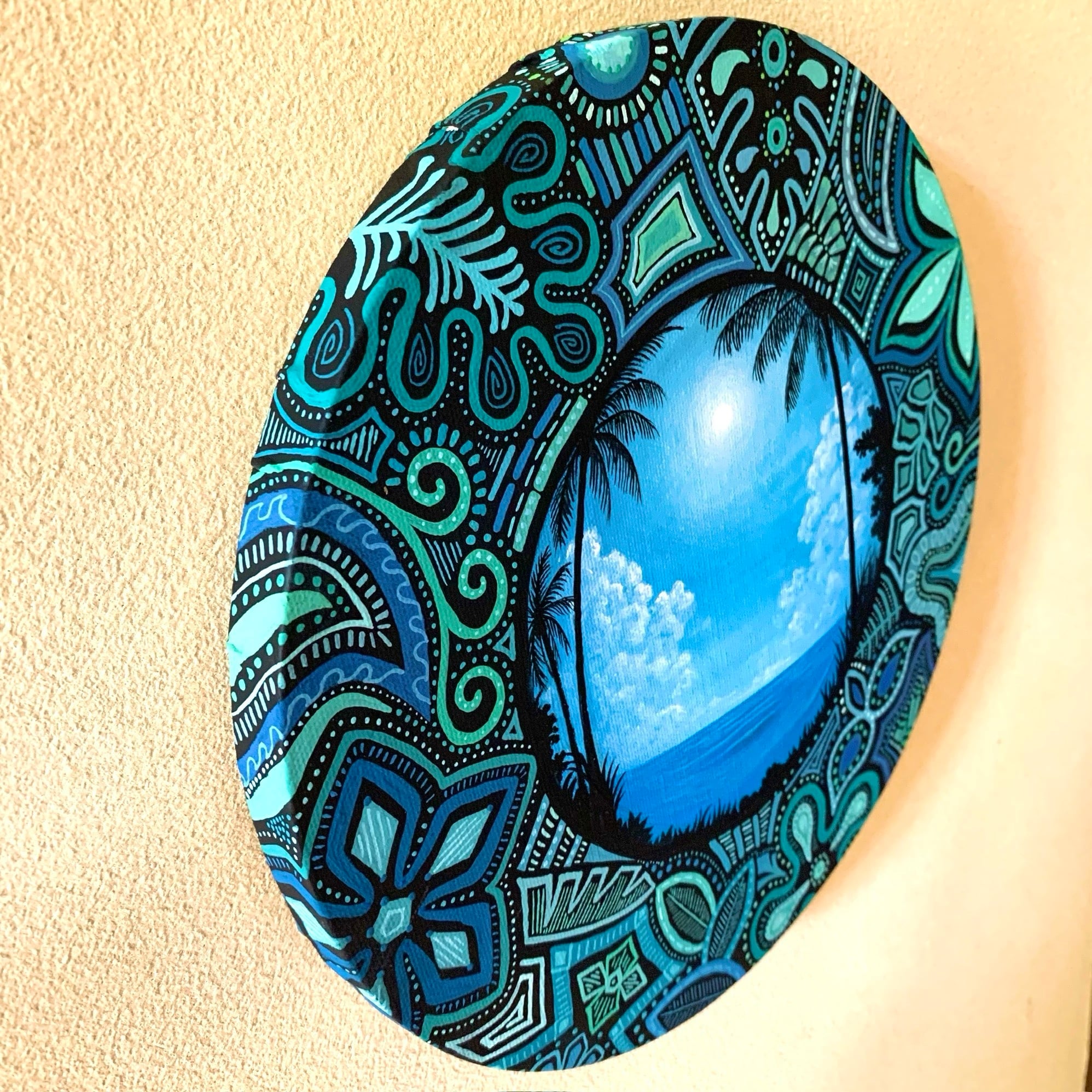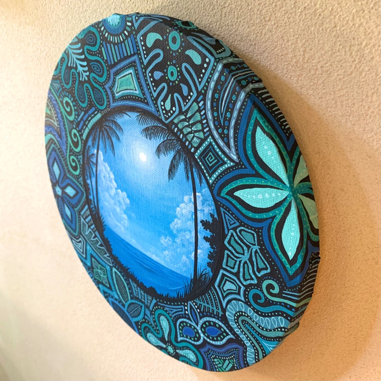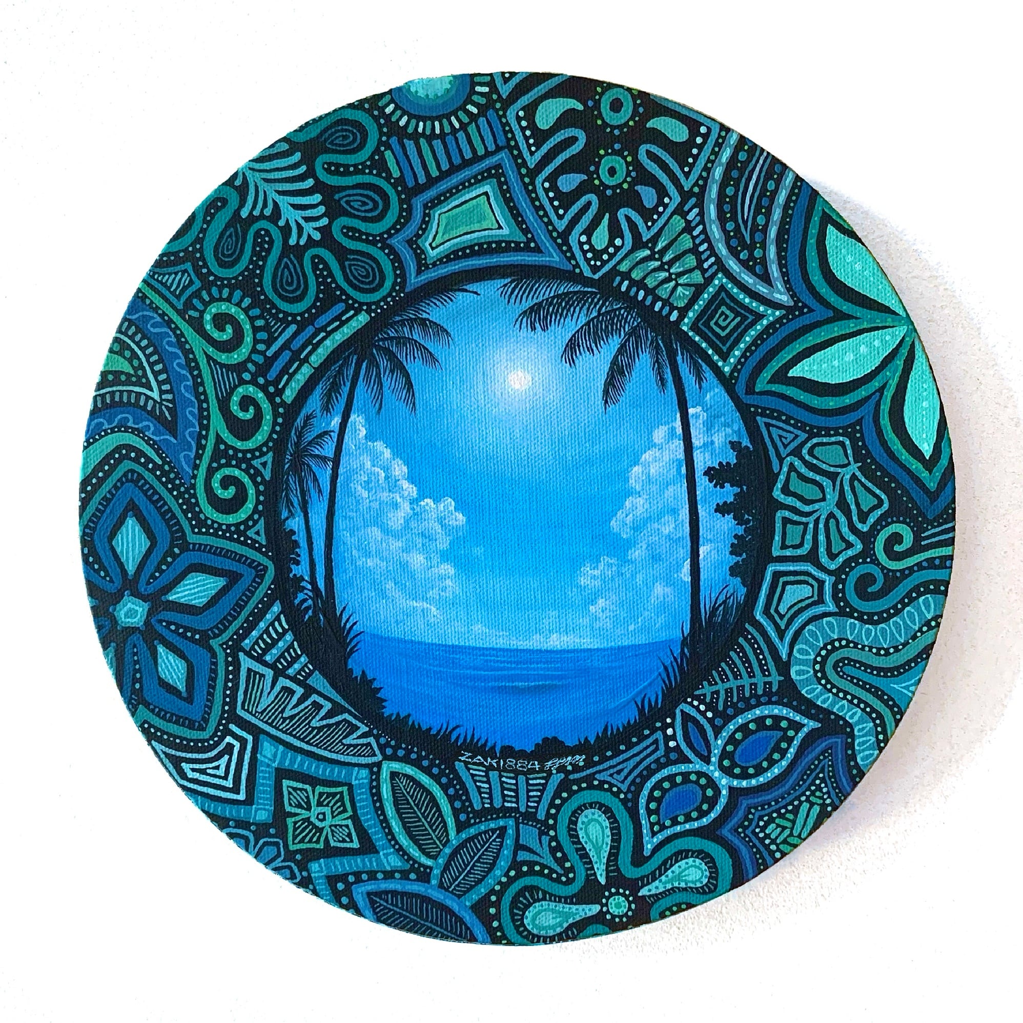 スタジオムラサキのアシスタントをする傍ら、アート活動を行う娘NOAHと立ち上げたユニット【ZAKI884】による手描きキャンバス画。中央の写実的な風景をMURASAKIが描き、全体の柄をNOAHが下絵なしで思いつくまま描きました。