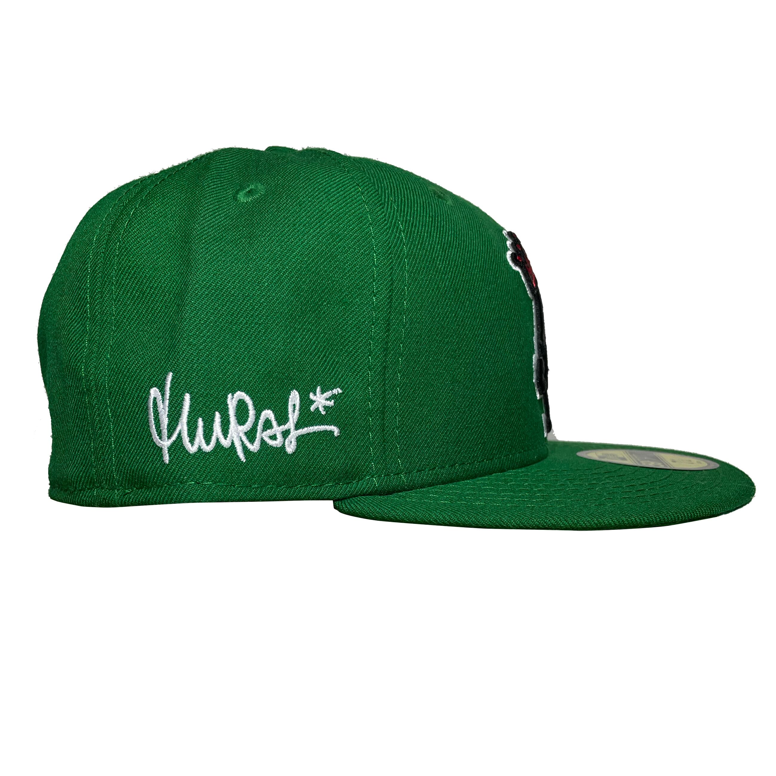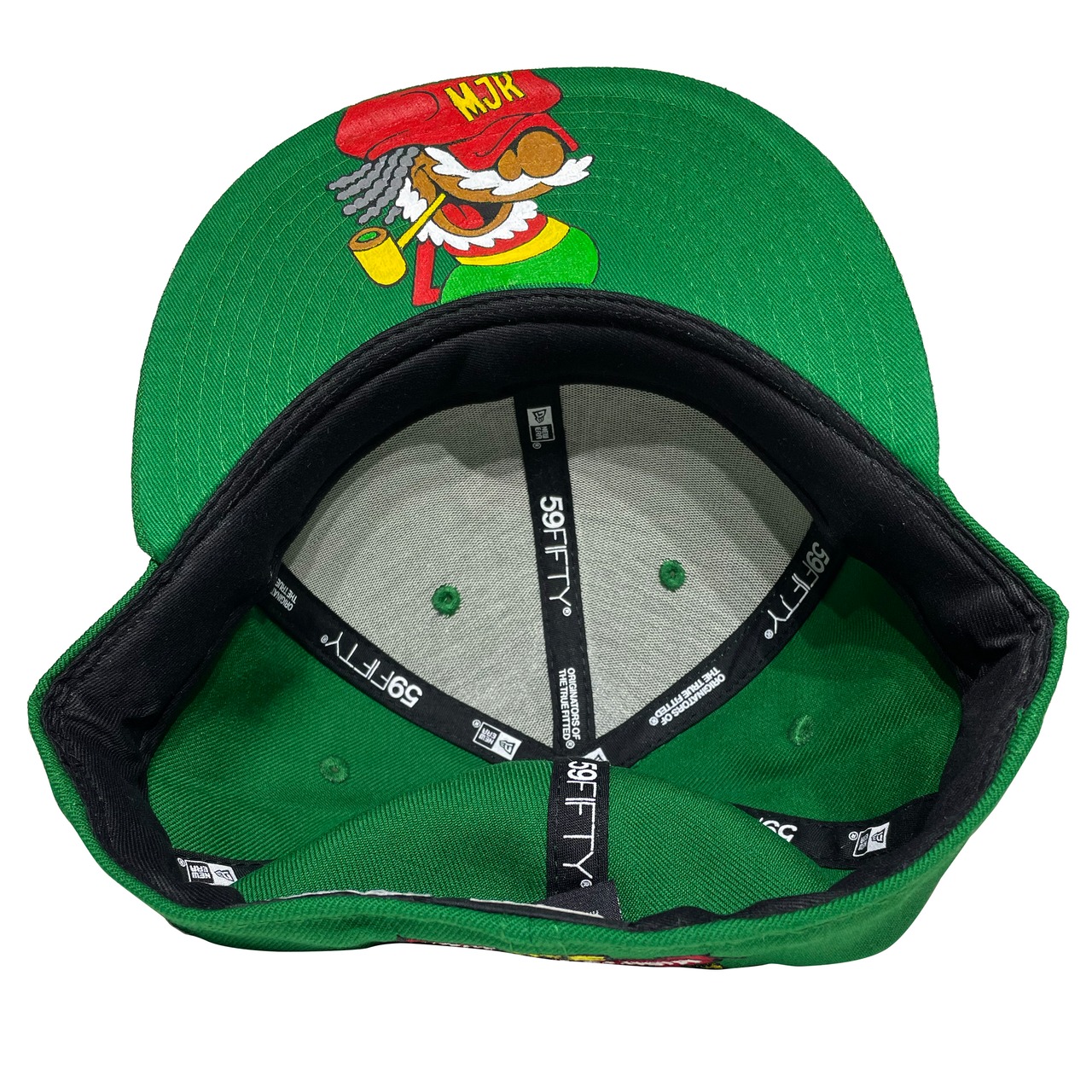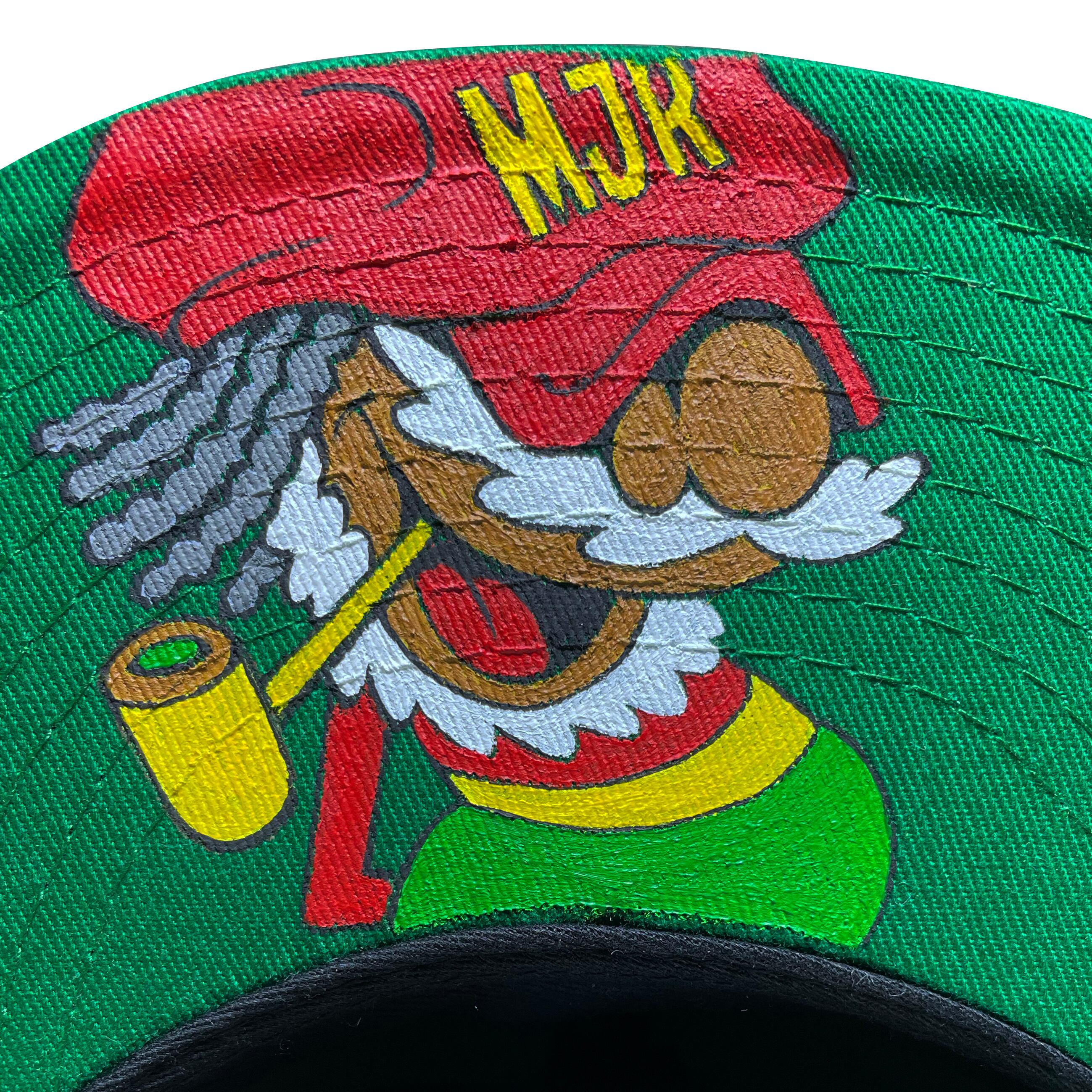 MJR x MURAL x NEWERAのレアなベースボールキャップのツバ裏に、2016年にワンシーズンだけ起用された某キャラクターをオマージュしたマイジャのおっさんを手描きしました。キャップは未使用ではありませんが、MURASAKIが撮影時などに数回のみ着用した状態の良い物です。